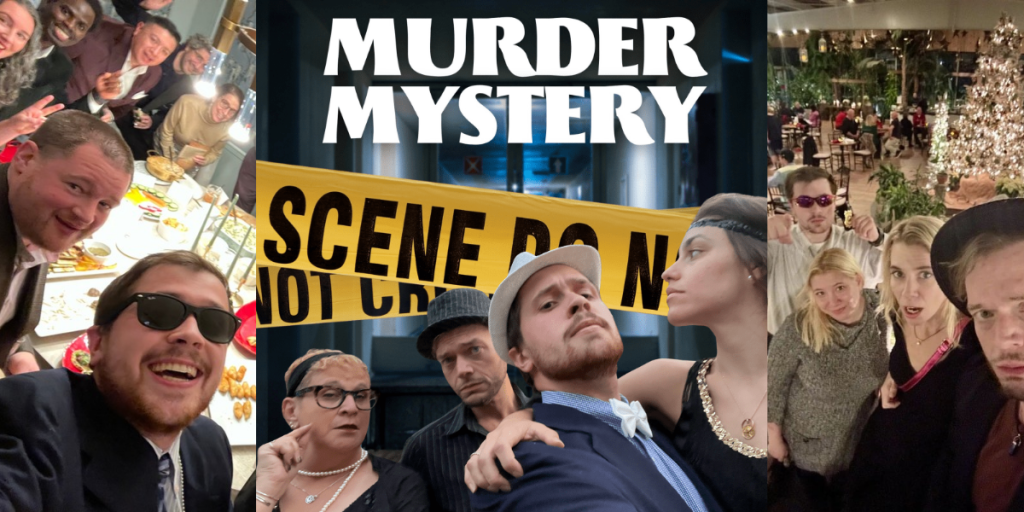 The ultimate cocktail party experience, our guests are the suspects and witness to a crime as well as the detectives. Everyone must mingle with everyone to collect story and clues to solve the crime.
